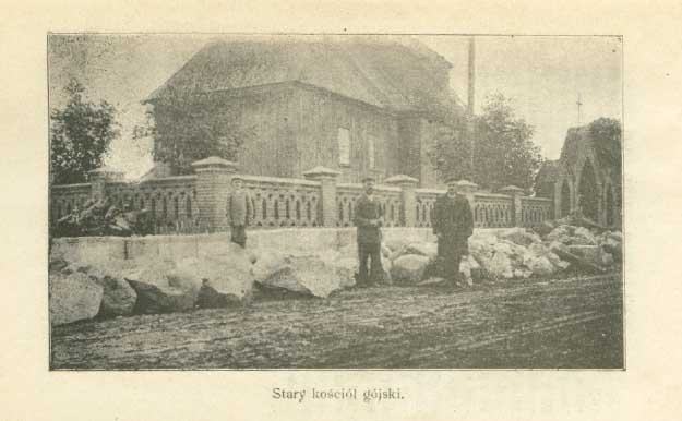 Old wooden St Nicolaus Church build in 1783 – 1785 by Brześć -Kujawy province governor (photograph before 1906 – from the Szkic monograficzno –historyczny parafii gójskiej of Father Zalewski from 1909).