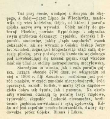 Vicinity of the Gójsk parish was rather poor. Priest Walenty Zalewski in his historical monograph of church construction in Gójsk (1909) characterissed it in such way.